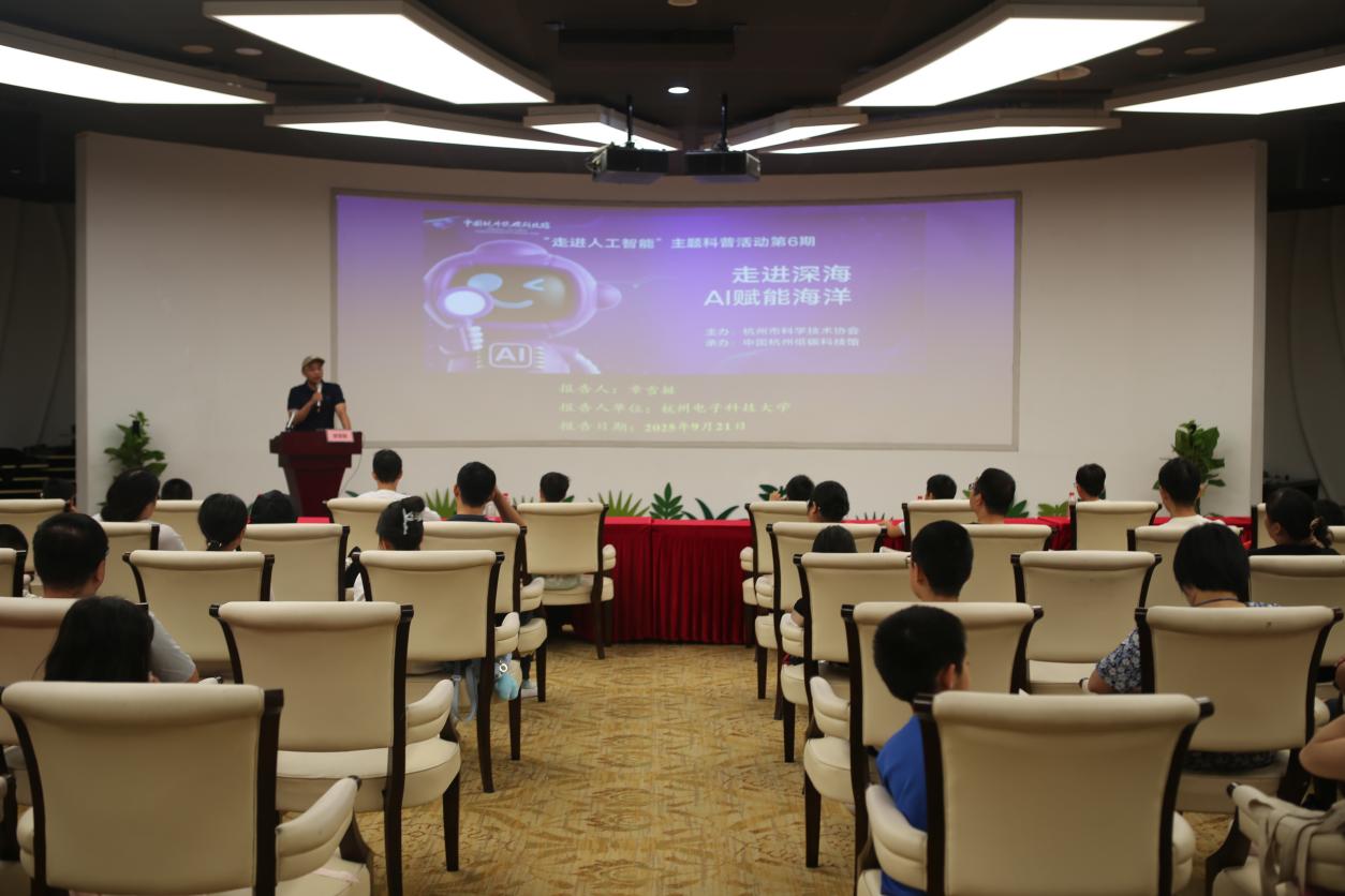 深?;魅?、具身智能、智慧海洋……9月20日上午,一场生动有趣的“人工智能+海洋”科普活动在中国杭州低碳科技馆举办。杭州电子科技大学海洋技术与装备研究中心主任章雪挺带来主题为“走向深蓝——AI赋能海洋”的精彩讲座。现场更有机器人互动体验,带领观众近距离接触水下机器人。