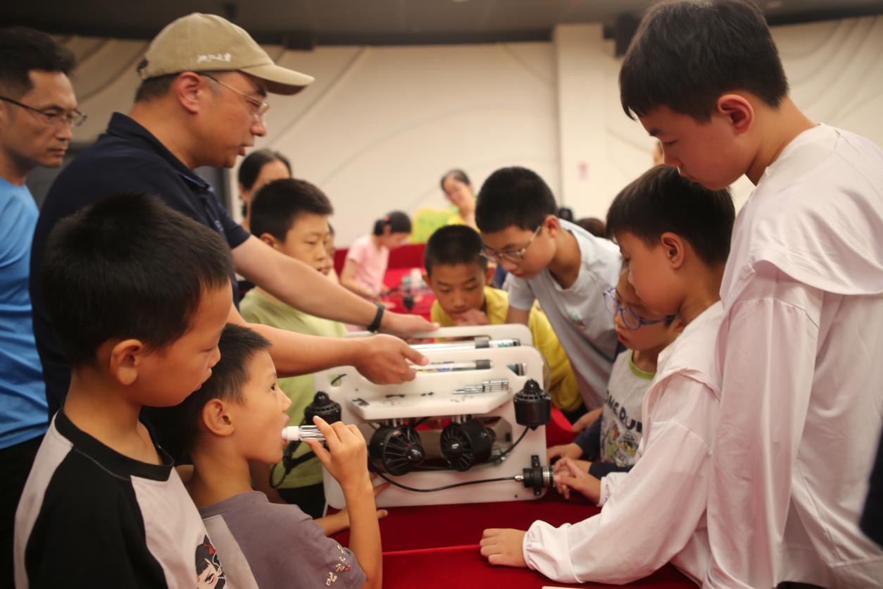 本次活动最大的亮点是互动体验环节。参与者近距离接触水下机器人模型。孩子们兴奋地围在机器人模型前,对模型的每一个部件都提出了问题,感受科技带来的奇妙体验。一位参加活动的家长表示:“这样的科普活动太难得了,不仅能让孩子学到海洋科学知识,也能很好地激发他们对海洋科技的兴趣和热爱?!?/span>