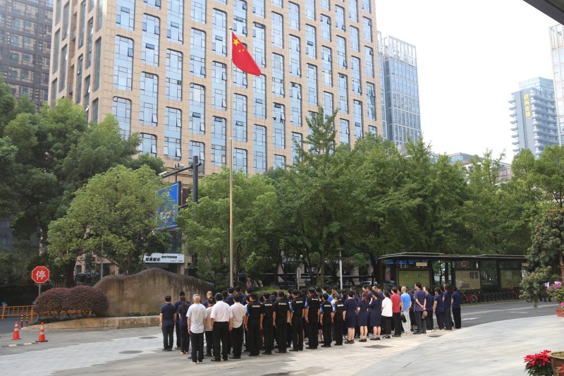 为庆祝中华人民共和国成立76周年,9月27日,中国杭州低碳科技馆在南广场开展“五星红旗升起来”主题活动,中国杭州低碳科技馆及物业全体工作人员参加。