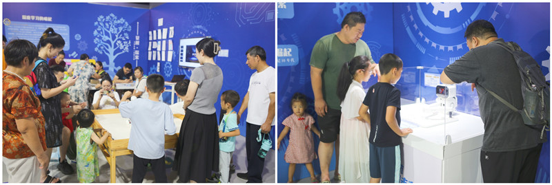 低碳实验室和科普活动角的低碳手作项目同样人气高涨?!敖承那墒?光影探趣”工坊里,2.2米拉花龙、非遗转花灯、宋锦扇子等传统手作和DIY火炬、单筒望远镜等科技制作同步进行,参与者在花灯、扇子和电路间感受文化和科技的碰撞;“智趣工坊”则推出榫卯算盘、古法香牌等非遗体验,搭配电报机、超声波坐姿仪等科技小制作,让动手过程成为知识学习的载体。